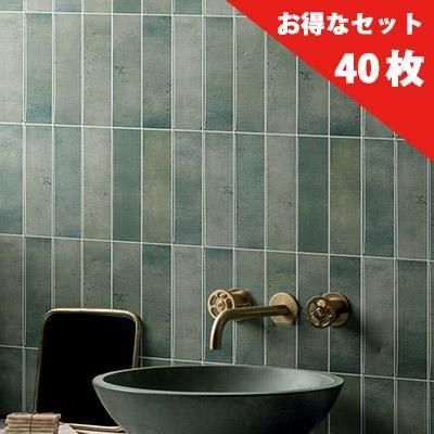 【7700円お得 40枚セット】ボーダー タイルシール BDM-04 ストーングリーン 耐水 耐熱 キッチン 洗面所 トイレの模様替え 壁紙デコ 29cm×22.9cm